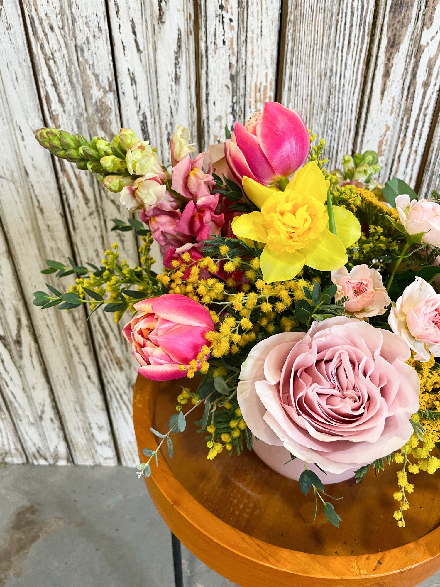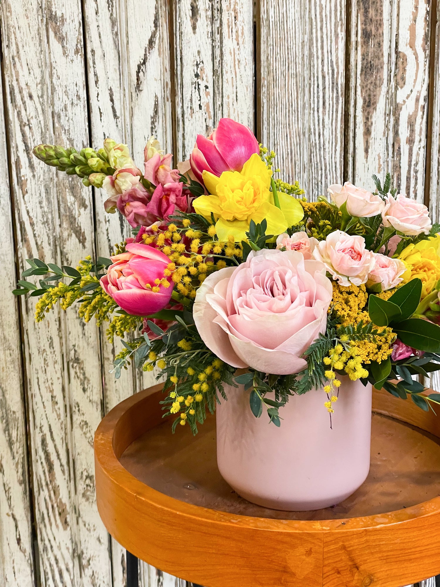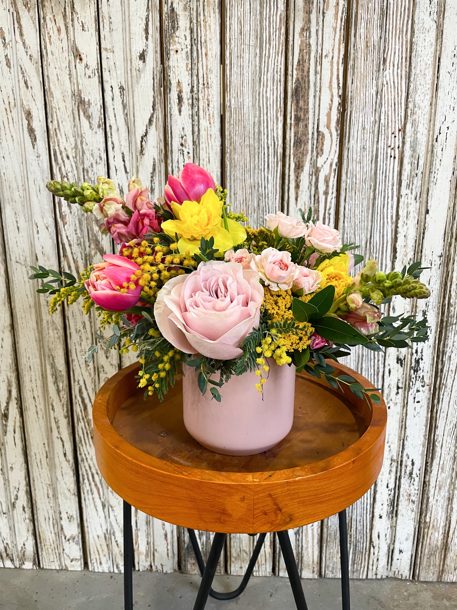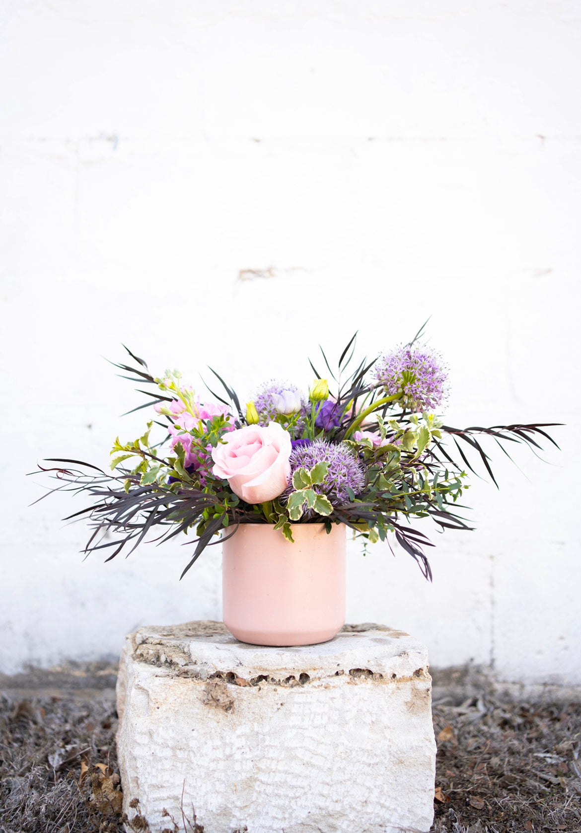 The Irma is our most popular designer's choice floral arrangement. The Irma is a medium sized composition of airy blooms and greenery, flowing and dancing with movement. This arrangement is the perfect dining table centerpiece or thoughtful offering to a friend.