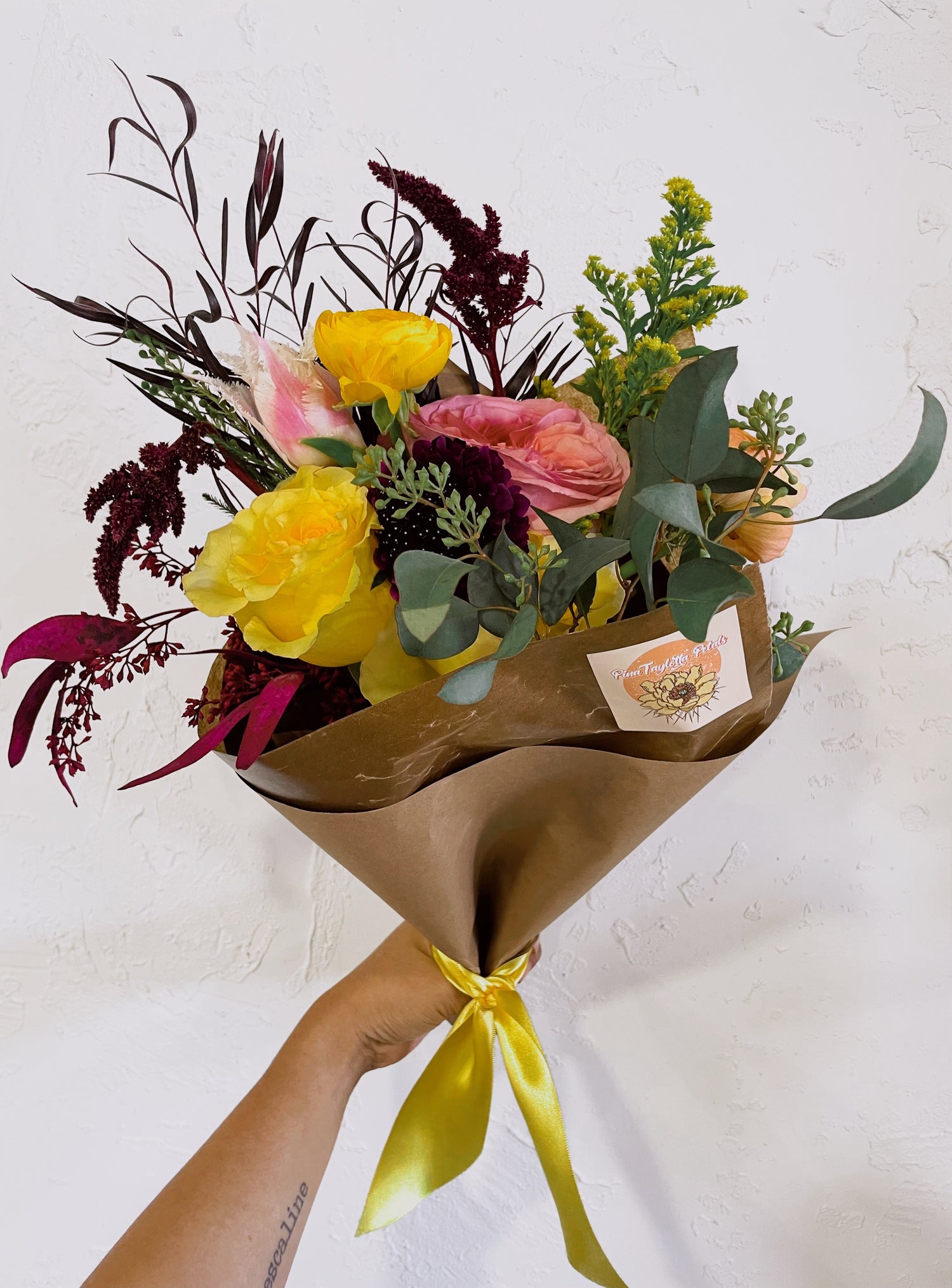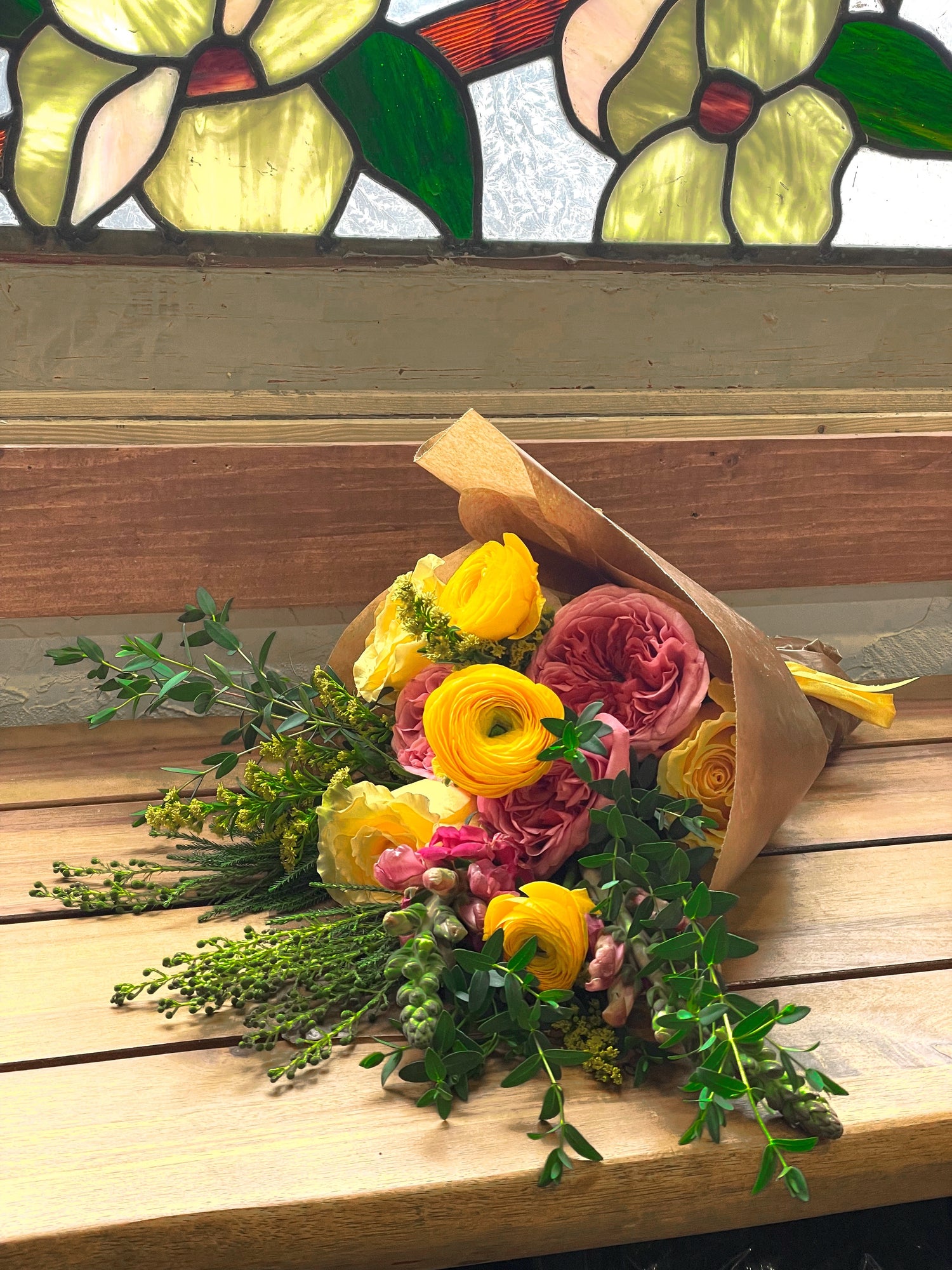 The Sarah is a collection of premium blooms carefully arranged just for you! This designer's choice bouquet comes market style, wrapped in our signature kraft paper. It is perfect for presenting to your loved one after a grand performance, gifting to a special someone, and so many more sweet moments!